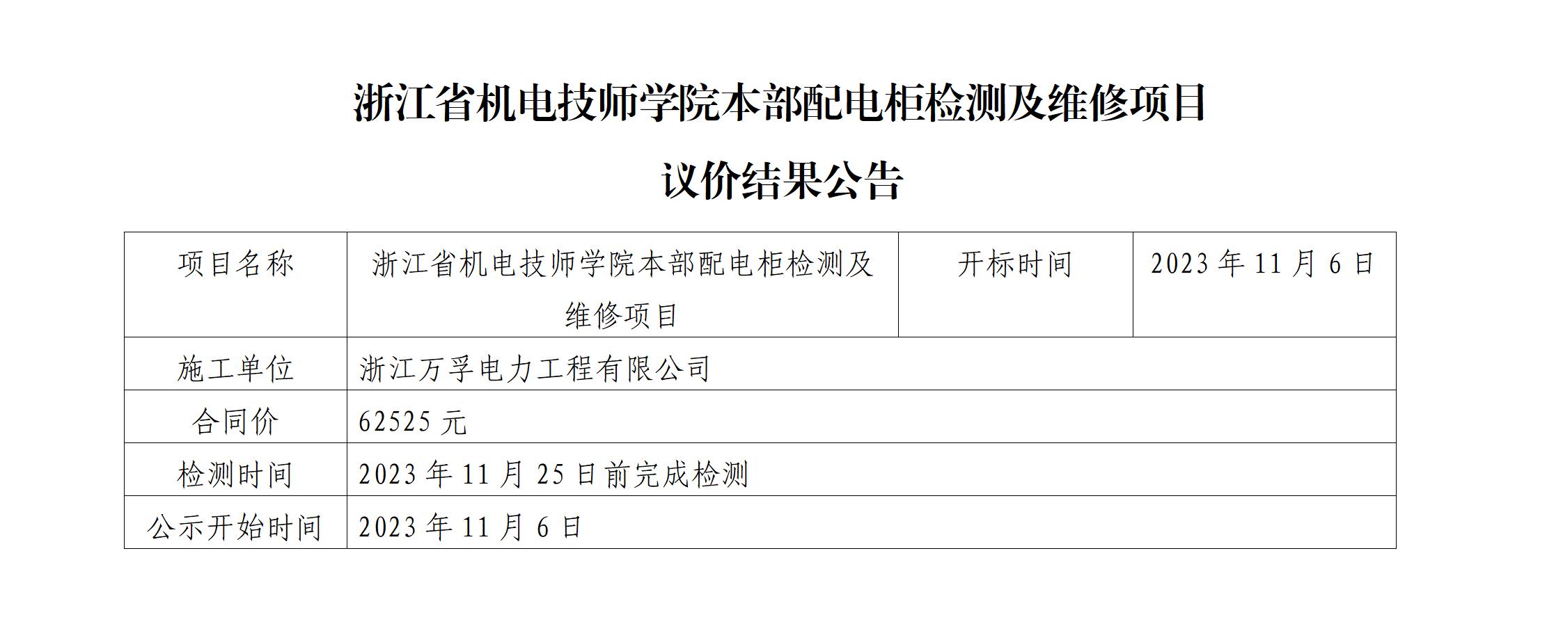 浙江省机电技师学院本部配电柜检测及维修项目议价结果公告