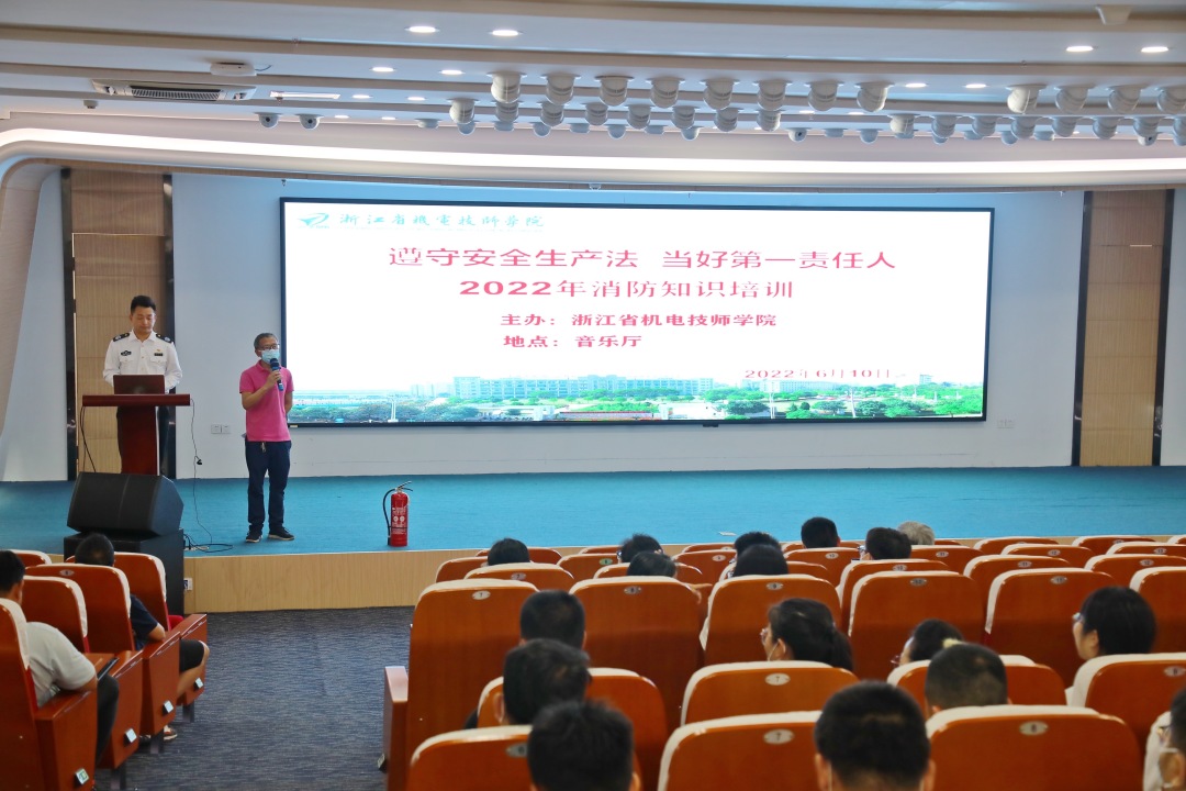 ▶安信处邀请消防队宣传员来校组织开展消防安全知识讲座与消防疏散演练。