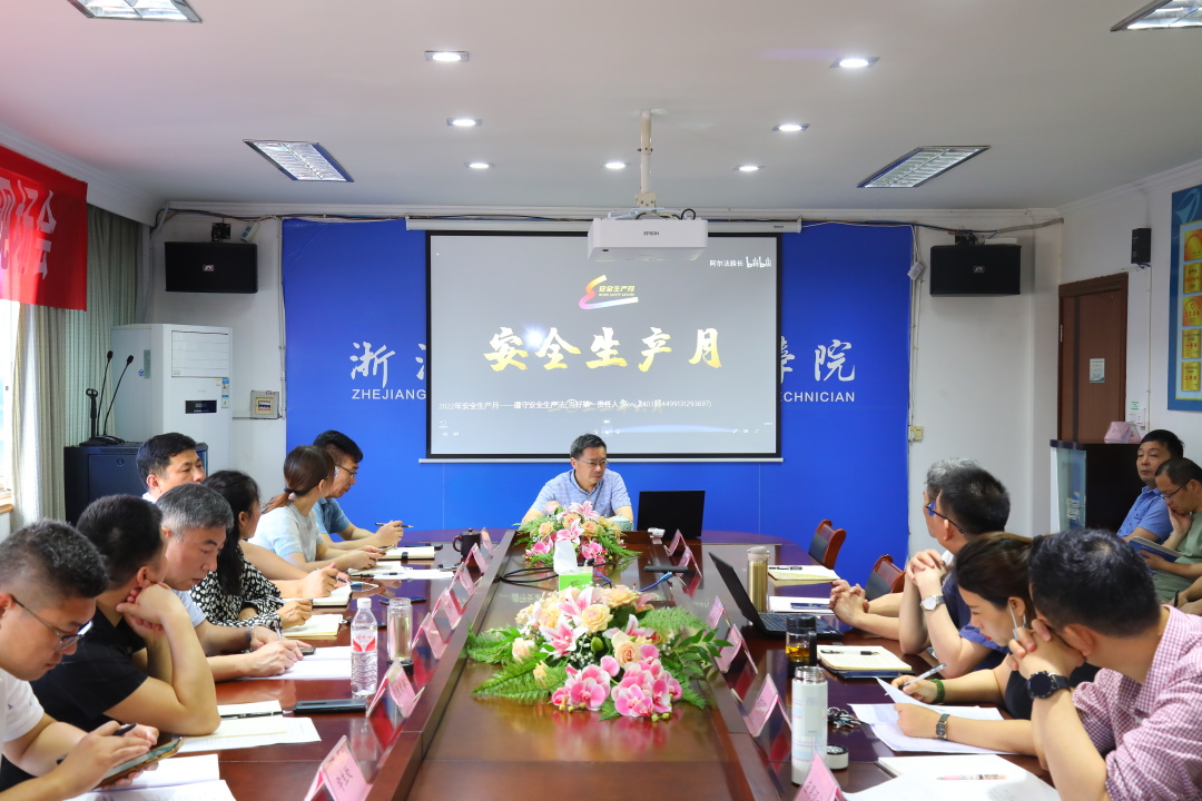 ▶学院召开第21个全国“安全生产月”安全教育专题会,院长曹小其作专题培训。